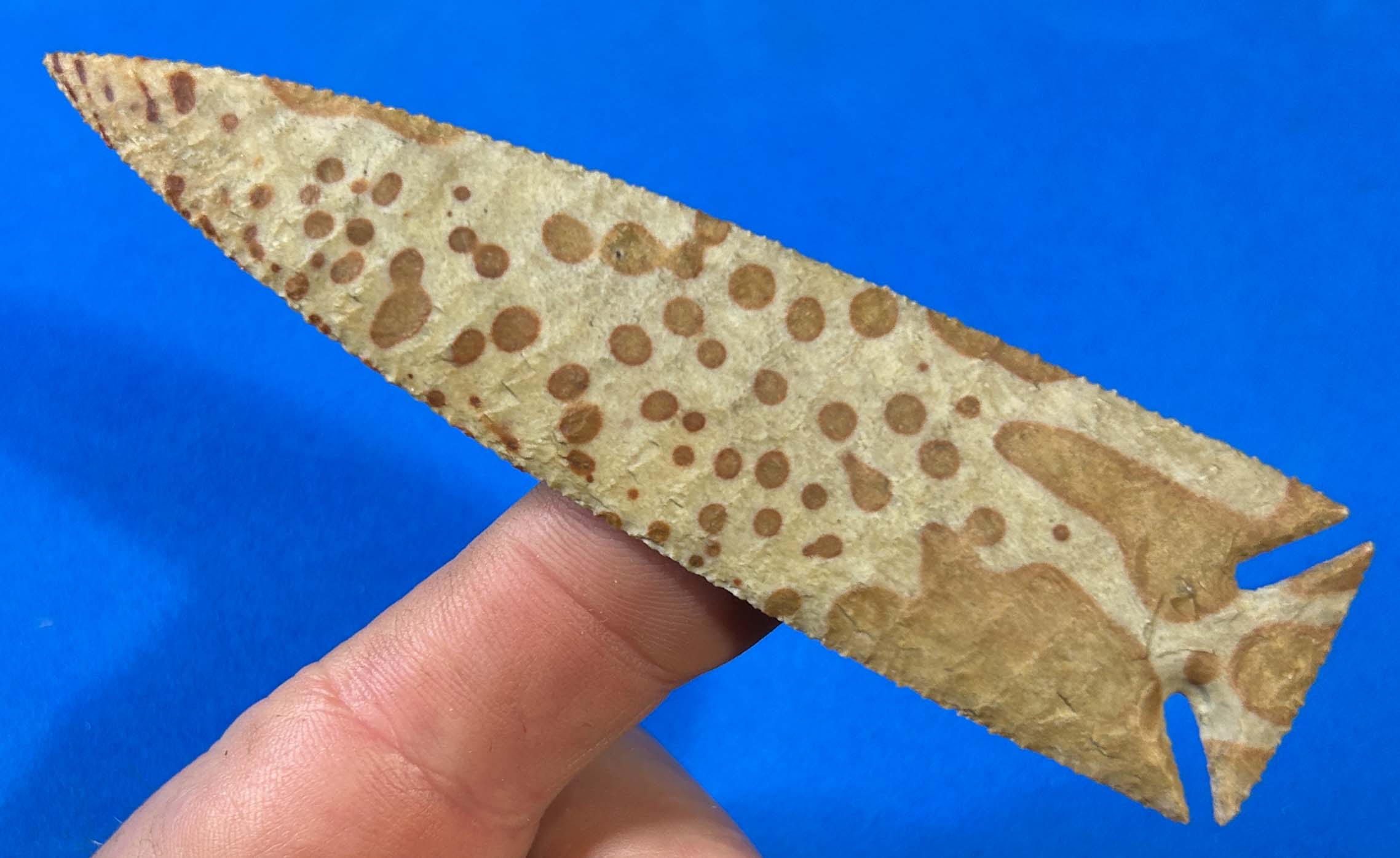 Painted Buffalo River is an amazing material from Tennessee that isn’t easy to get, not does it typically occur in large pieces. This unique 4.25 inch point of Painted Buffalo River is what you’d call a polkadotted beauty!!